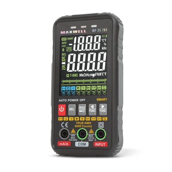 Nagyméretű, színes kijelzővel szerelt műszer, amelyről még napsütésben is könnyen leolvashatóak a mért értékek. A teljesen automata multiméter előnye, hogy a mérés során a készülék automatikusan felismeri melyik funkcióra van szükség és abban végzi el a mérést. Lehetősége van a kívánt funkciót kézzel is kiválasztani, ilyen esetben a csatlakozó körül világító LED fény segíti a mérőzsinórok helyes csatlakozását. A készülék hátoldalán található szenzor segítségével detektálhat feszültséget, anélkül, hogy megbontaná a kábelezést. A beépített munkalámpának köszönhetően szükség esetén megvilágíthatja a munkaterületet. Ergonomikus készülékház, kompakt méret és könnyű kezelhetőség jellemzi. A praktikus, keményfalú hordozótáska megvédi a terméket a szállítások alkalmával.