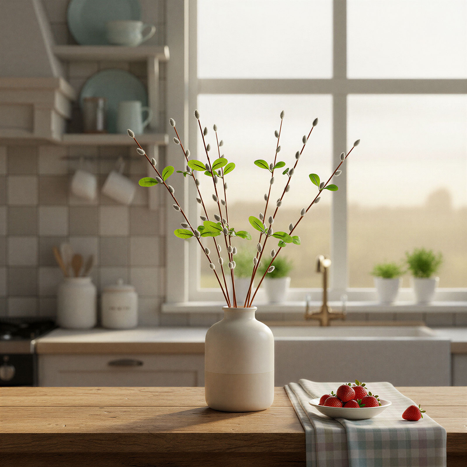 A barkaág a tavasz és a húsvéti időszak egyik legkedveltebb dekorációs eleme. Ez az élethű, szálas barkaág önmagában is mutatós, de vázába rendezve, más mű- vagy élővirágokkal kombinálva igazán hangulatos kiegészítője lehet otthonának. A természetes hatású rügyek és az apró zöld levelek frissességet sugároznak, miközben tartós anyagának köszönhetően évről évre újra felhasználható. Ideális választás asztali díszekhez, húsvéti kompozíciókhoz, koszorúkhoz, vagy akár önálló lakásdekorációként is.