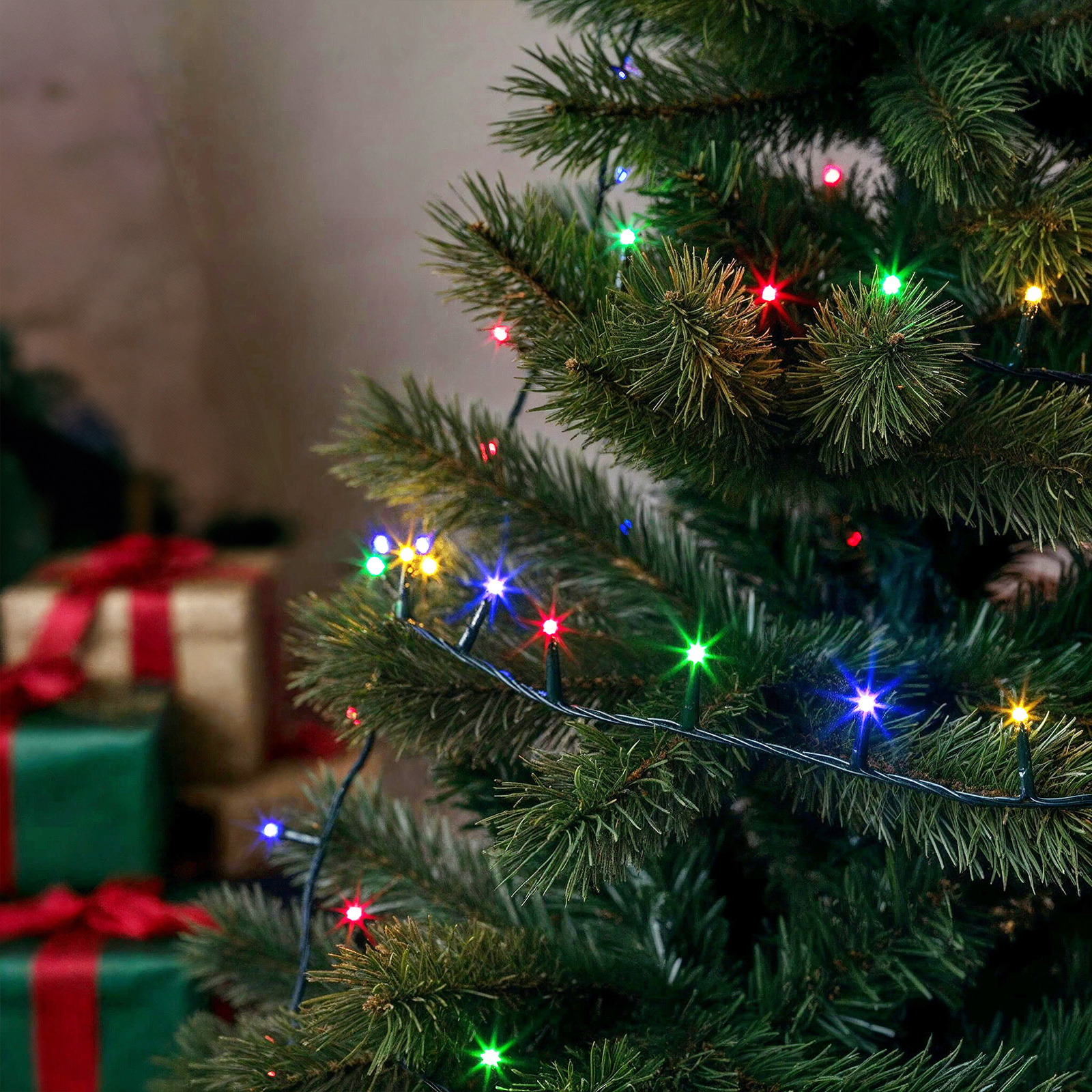 Fényfüzér – 10 m – színes – 200 LED – 220-240V – 6W – zöld kábel