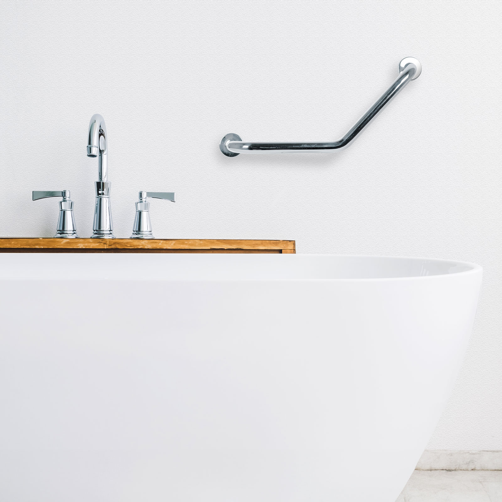 Ez a 45°-ban hajlított falra szerelhető kapaszkodó praktikus és biztonságos megoldást nyújt a fürdőszobában és WC-ben. Kiváló választás illemhelyek akadálymentesítéséhez. Megkönnyítheti a kádba belépést az idősebb korosztálynak, terhes nőknek, mozgásában korlátozott személyeknek, illetve a gyerekeknek is. Rozsdamentes acélból készült, krómozott felülettel, így könnyen tisztítható, mégis esztétikus. A csomag minden szükséges szerelési tartozékot tartalmaz.
