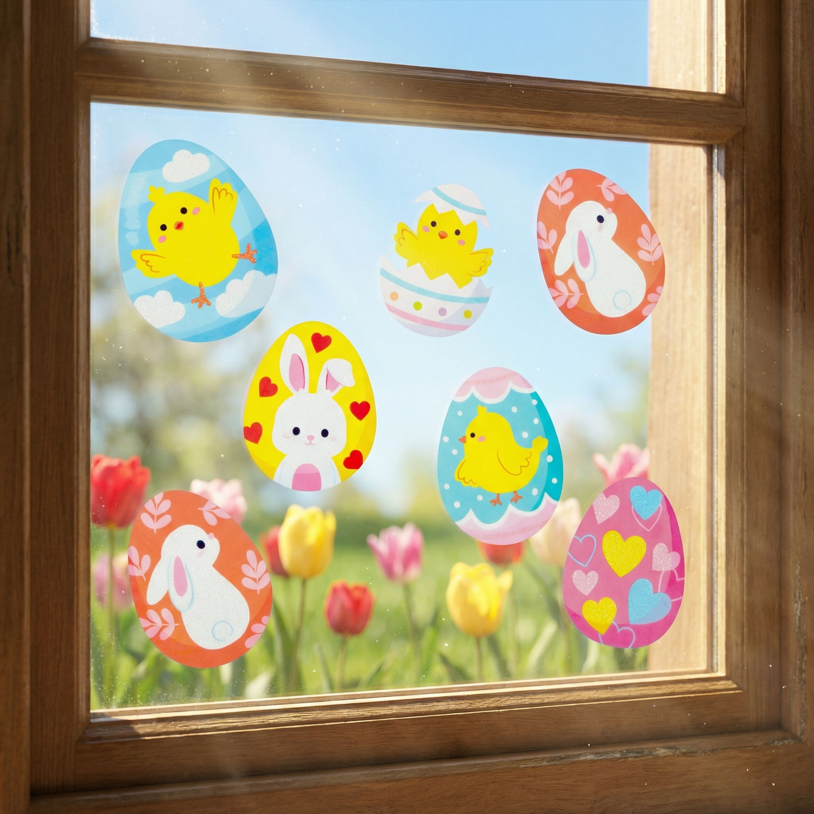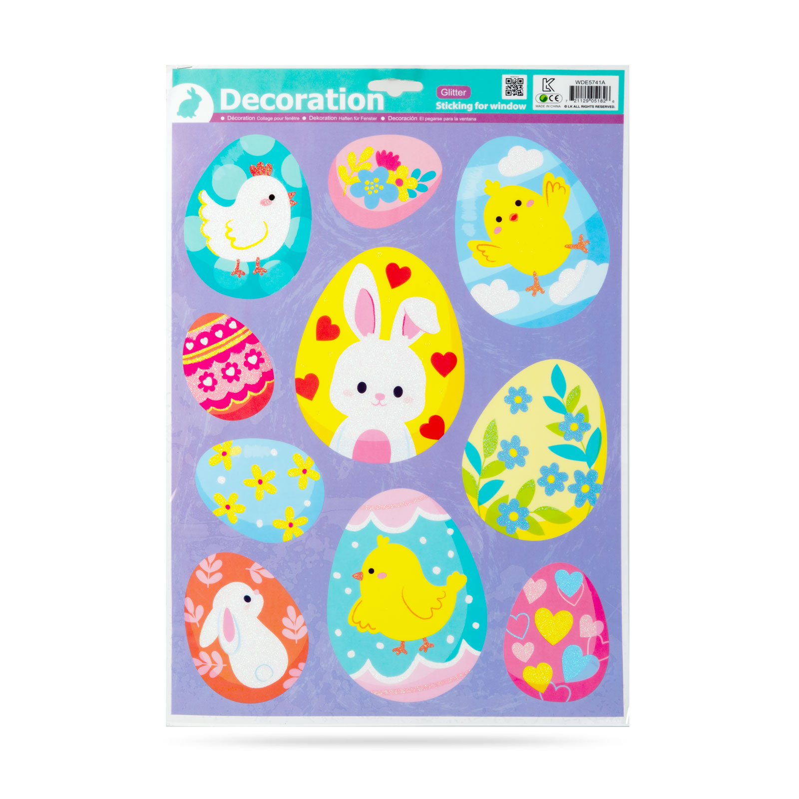 Tegye még vidámabbá otthonát a húsvéti ünnepek alatt ezzel a csillámos ablak matricával! 43 × 30 cm-es lapot tartalmaz, amely színes tojásokat, kiscsibéket, nyuszikat ábrázolnak. A matrica könnyen felhelyezhetők üvegfelületekre, ablakokra, tükrökre, és ugyanilyen egyszerűen el is távolíthatók. A csillámos részleteknek köszönhetően különösen hangulatos fényhatást keltenek, így remek választás ünnepi dekorációhoz, gyerekszobába vagy nappaliba.