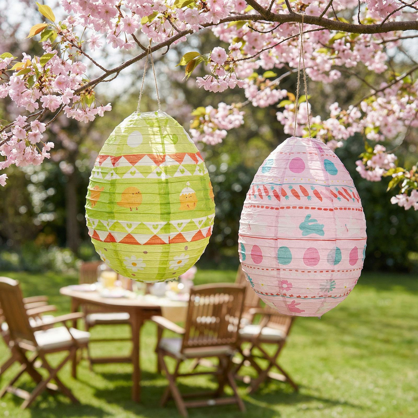Húsvéti dekoráció – papír lampion – tojás – zöld, rózsaszín – Ø30 cm