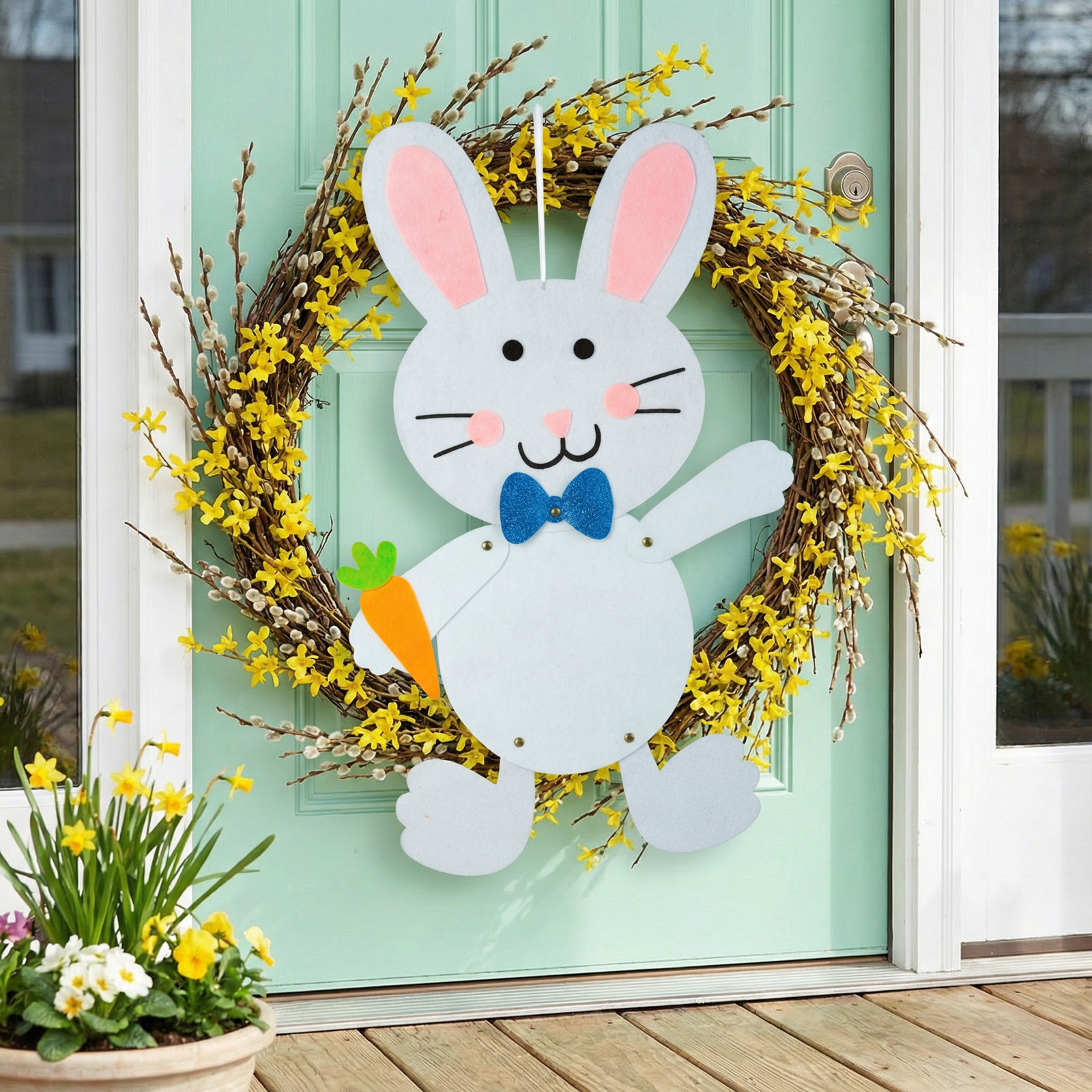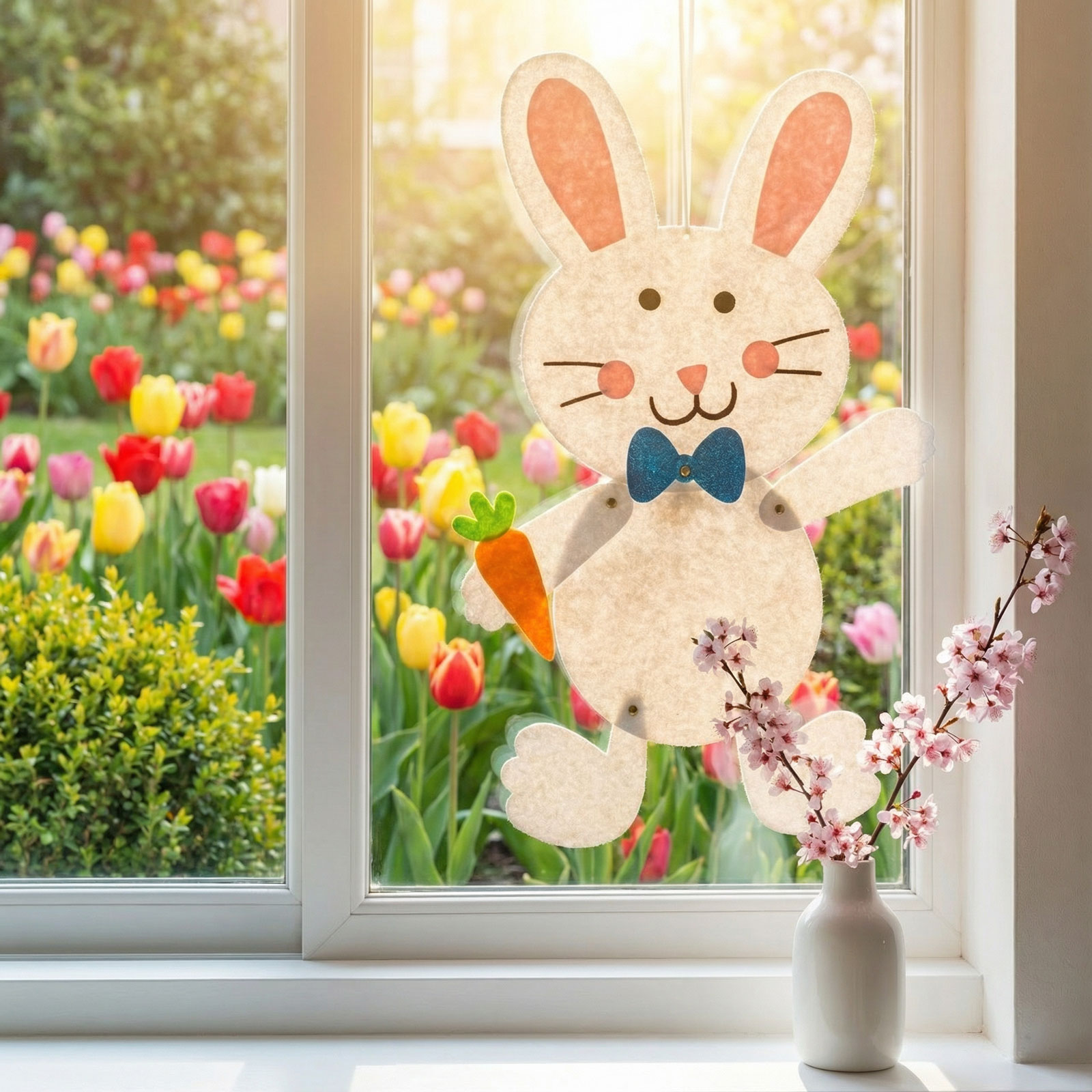 Hozzon tavaszi hangulatot otthonába ezzel a bájos húsvéti nyuszival! A filcből készült függő dekoráció a vidám masnijával minden helyiséget feldob. Könnyedén felakasztható ajtóra, falra, ablakra vagy akár gyerekszobába is. Kiváló választás húsvéti díszítéshez, ünnepi kompozíciókhoz vagy ajándék kiegészítőjeként