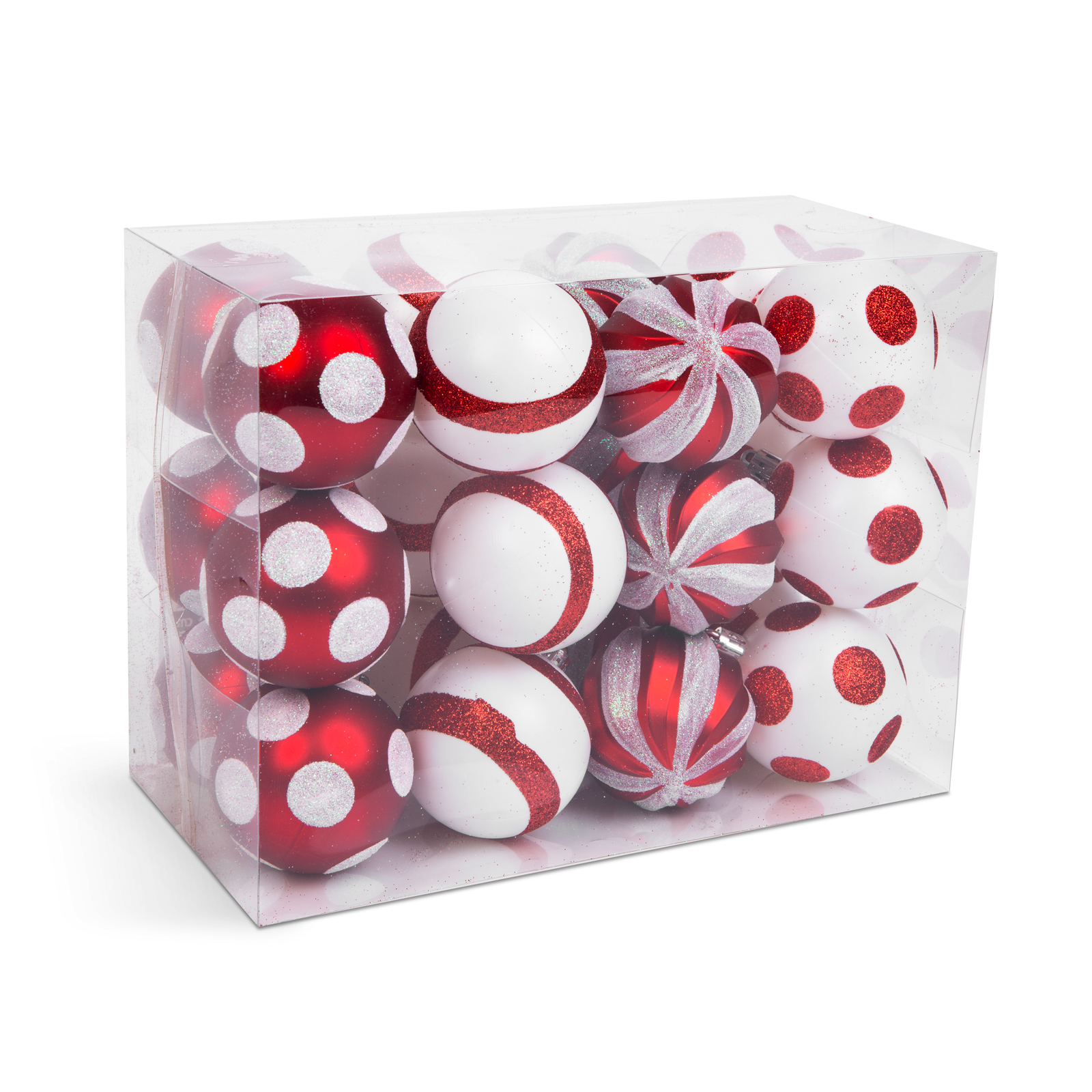 Karácsonyfadísz szett – piros / fehér – 24 db / szett