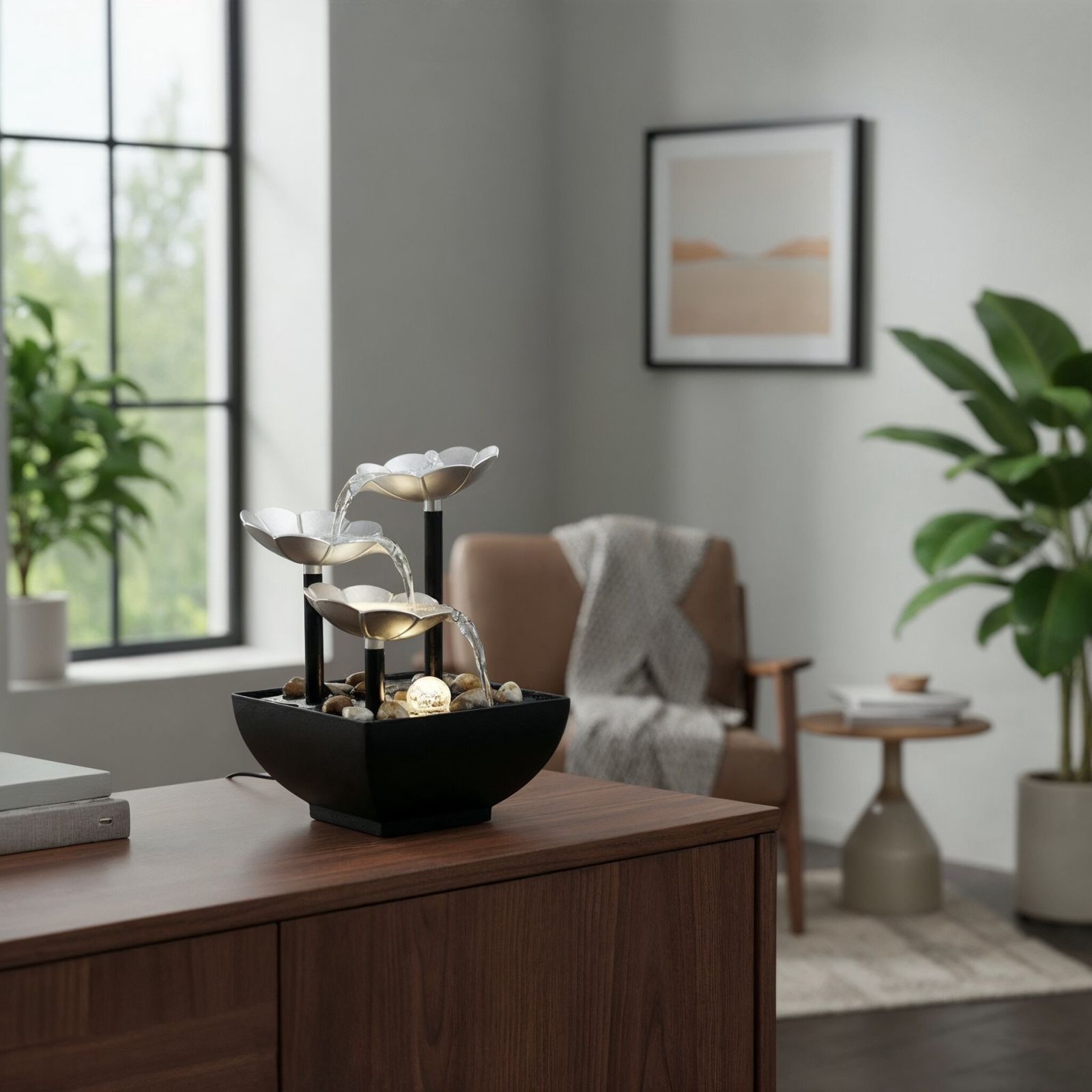 Mivel sokan otthonról dolgozunk, az otthoni iroda is remek hely a szökőkút elhelyezéséhez, hogy pozitív energiát hozzon a mindennapjaidba. A csordogáló víz nyugtató hangja békés és nyugodt, amely segíthet ellazulni. Meditáció közben segíthet feloldani a feszültséget vagy stresszt.