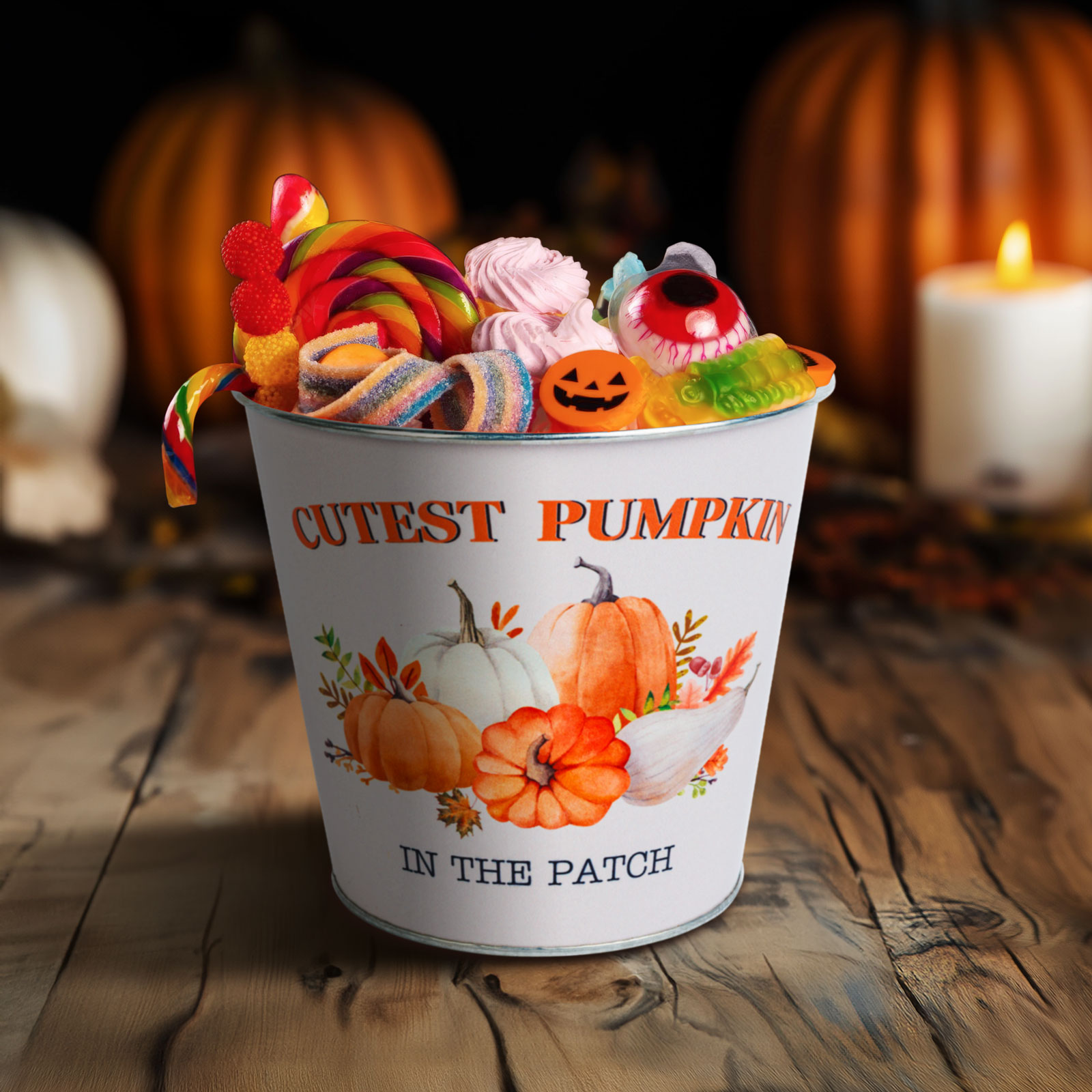 Dobja fel otthonát ezzel a hangulatos őszi dekorációval! A tökös mintával díszített fém vödör tökéletes kiegészítője lehet az őszi asztali dekorációnak, Halloween tematikájú díszítésnek vagy akár egy kreatív ajándéknak. Stílusa és meleg színvilága kellemes őszi hangulatot teremt bármely helyiségben.