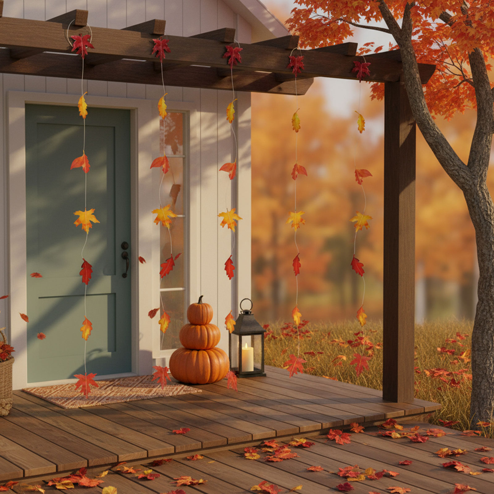 Dobja fel otthonát vagy munkahelyét az ősz varázslatos színeivel! Ez a lenyűgöző őszi dekoráció tökéletes választás, ha szeretné meghitté és hangulatossá varázsolni a helyiséget. A cérnára felfűzött, élethűen megformált falevelek a természet szépségét idézik, miközben könnyedén felakaszthatók különböző helyekre.