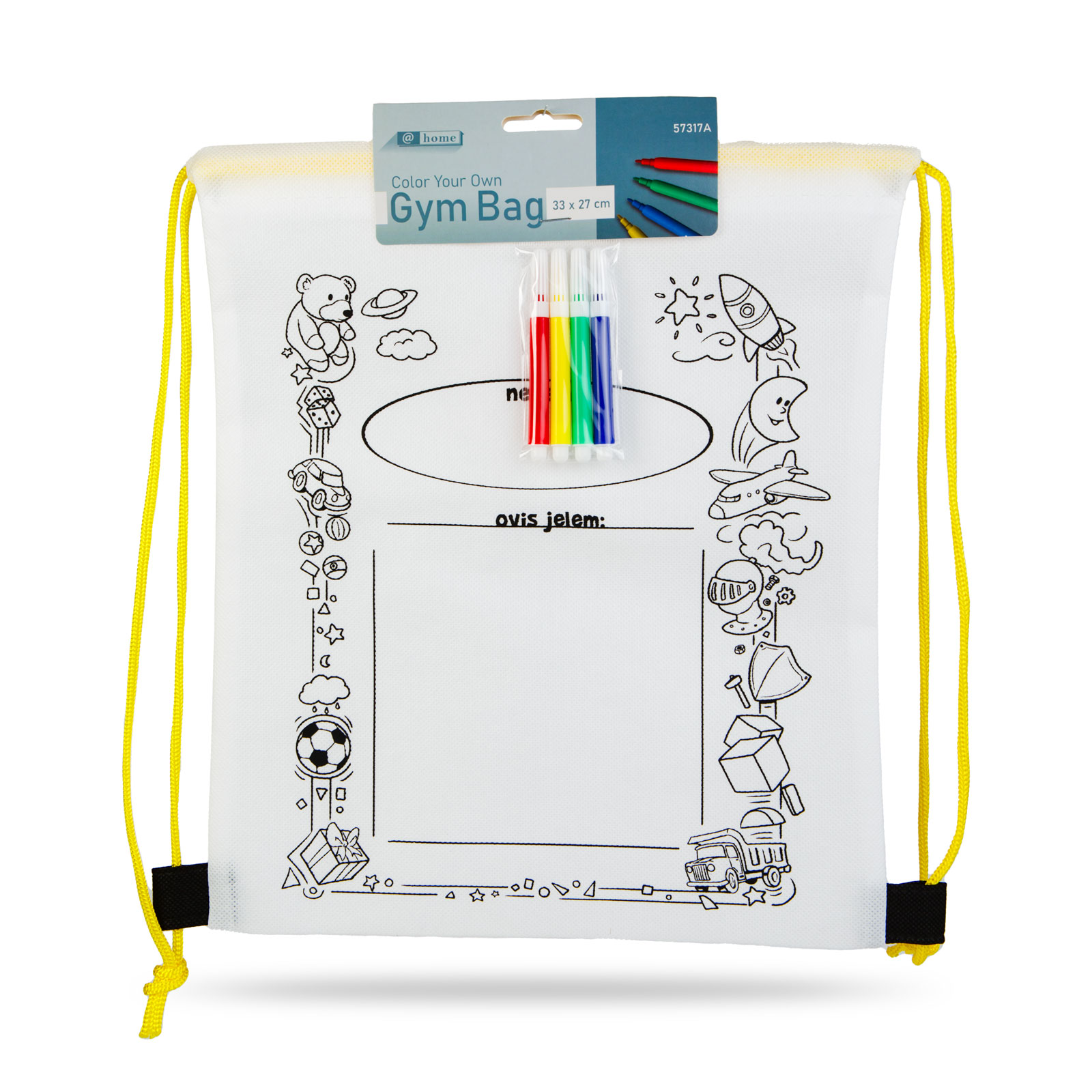 Színezhető tornazsák – 4 filccel – 33 x 27 cm