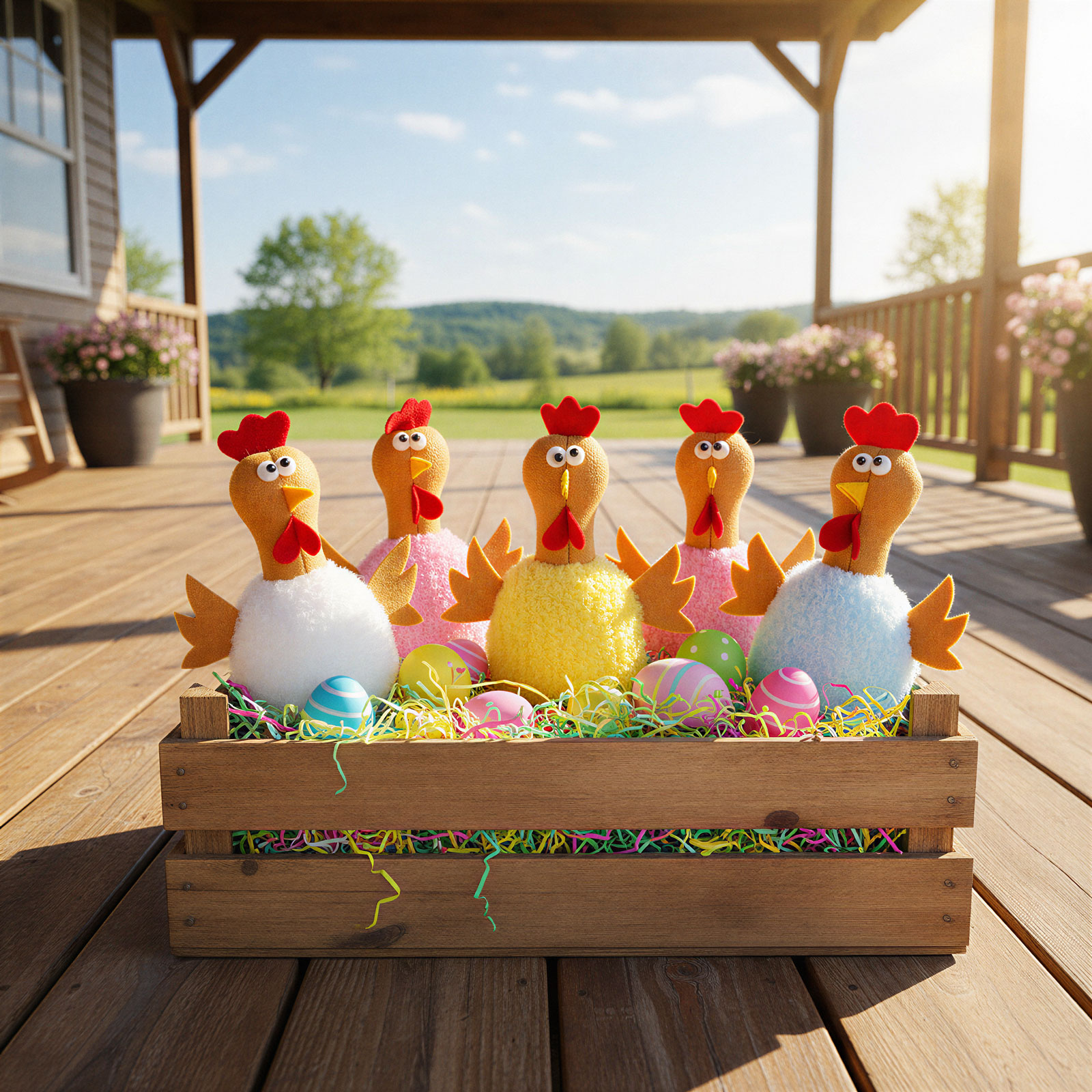 Ez a vicces, textil csirke dekoráció tökéletes választás otthona, irodája vidámságának megteremtésére, díszítésére, különösen húsvéti időszakban. A részletgazdag kidolgozás, a bolyhos test és a vidám, mókás arckifejezések garantáltan mosolyt csalnak az arcokra. Tökéletesek asztaldíszként, polcra helyezve vagy ajándékként is, hiszen kedves és egyedi kiegészítői lehetnek bármilyen enteriőrnek.
