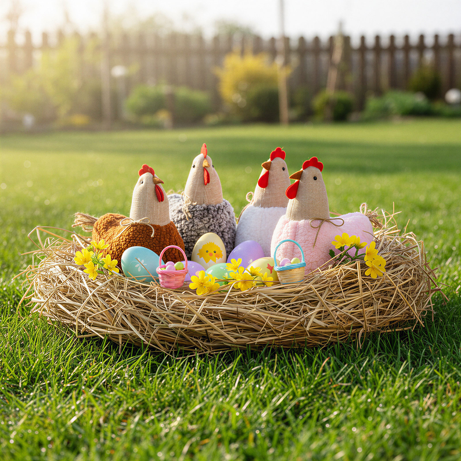 Ez a bájos textil tyúkanyó dekoráció tökéletes választás otthona díszítésére, különösen húsvéti időszakban vagy vidéki hangulat megteremtéséhez. Puha textil anyagból készült, természetes színvilágával és aprólékosan kidolgozott részleteivel barátságos, meghitt atmoszférát teremt a nappaliban, konyhában vagy akár az előszobában.