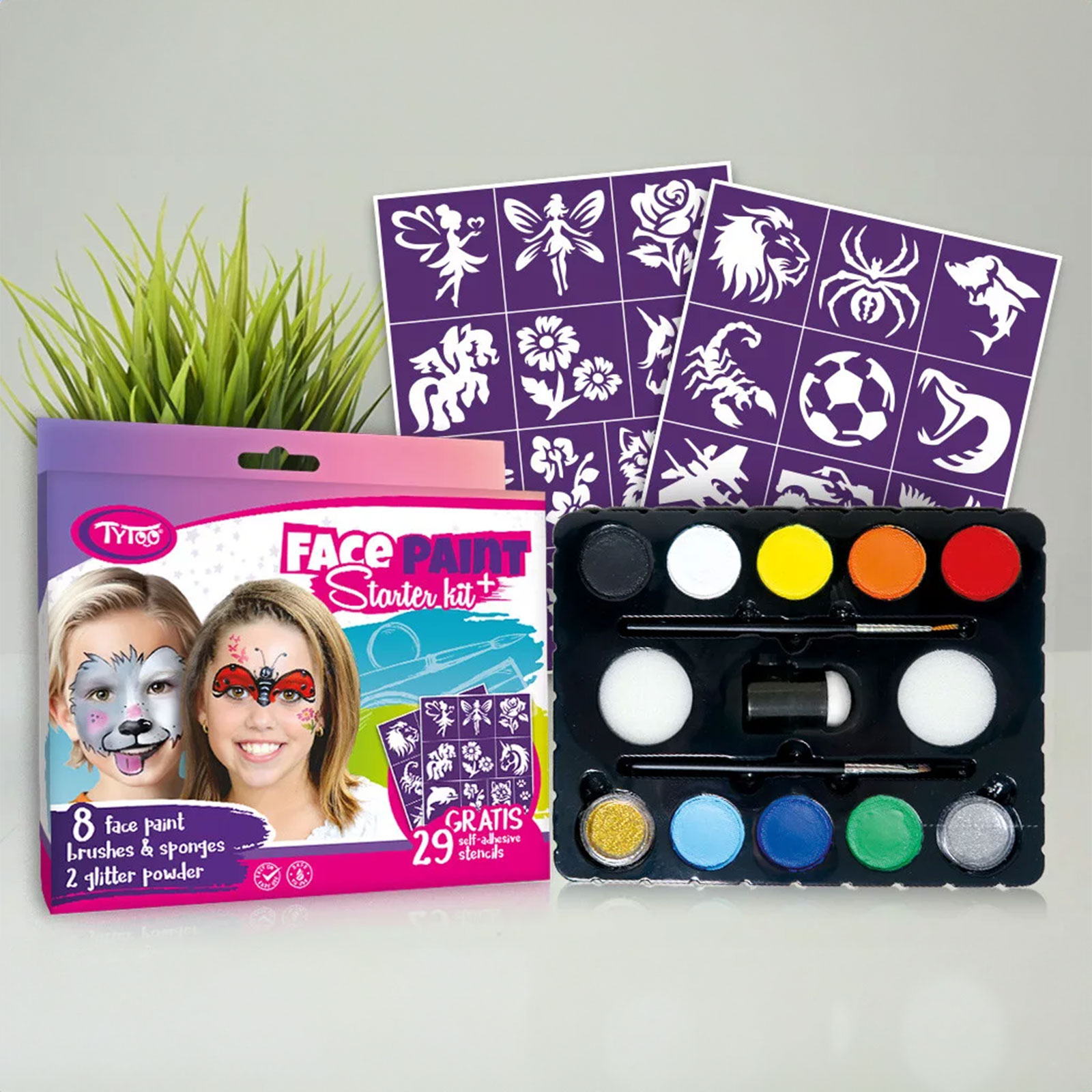 Ez a szett a legkisebb arcfestő készletünk, de most még többet nyújt, mint eddig! Az alapvetően szükséges eszközök mellett, most ujjra húzható szivacsot talál benne a még egyszerűbb festésért, valamint két öntapadós sablonívet, amelyeken összesen 29 különféle minta található – külön lányosabb és fiúsabb motívumokkal, hogy minden gyerek megtalálja kedvencét.