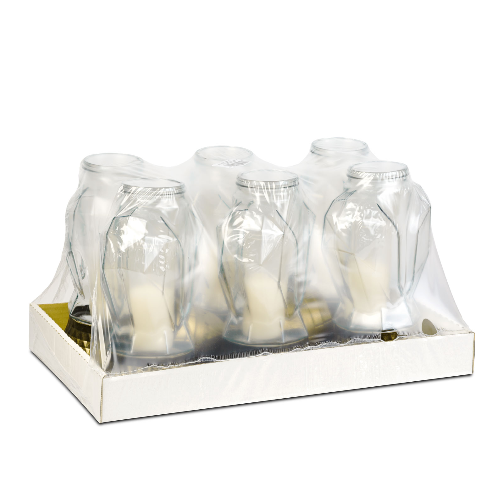 Üveg mécses – műanyag kupakkal, üveg szín: fehér, kupak szín: fekete – arany antik – 31 cm